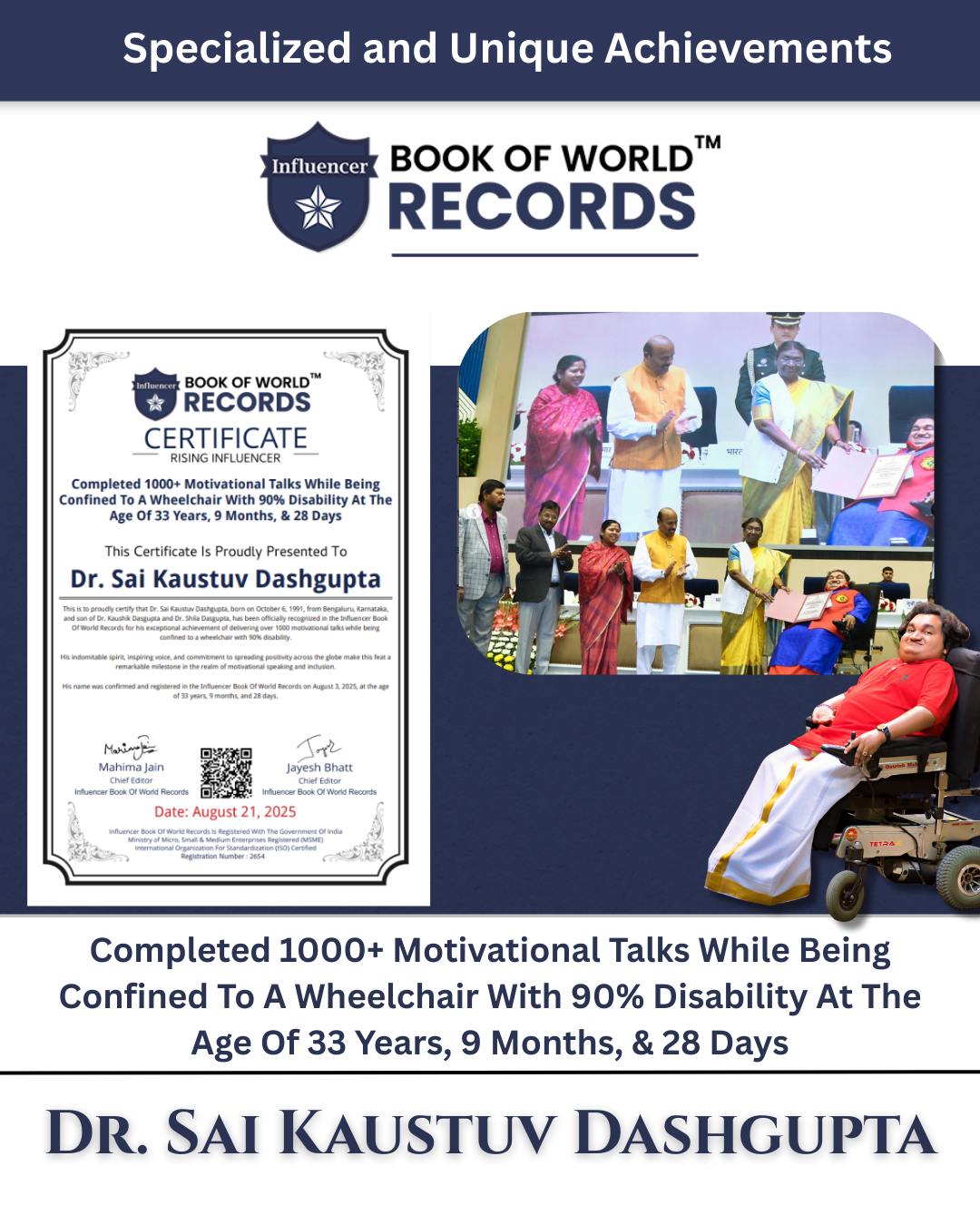 Welcome to the Influencer Book of World Records—where ambition ignites and dreams defy every limit! This is where the impossible becomes reality, and where innovators, trailblazers, and record-breakers from across the globe set the world on fire. From rising prodigies to legendary change-makers, our record-holders are redefining greatness and inspiring millions along the way.
